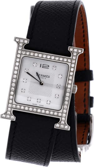 Heure H Quartz Watch Stainless Steel and Leather with Diamond Bezel and Markers and Mother of Pearl 26