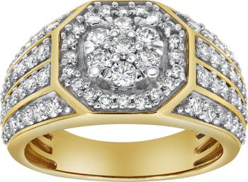 Hex Rose 14K Yellow Gold Diamond Men Statement Ring - 1.74ct.