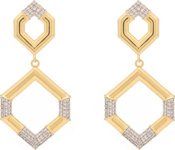 Introduce a geometric element to your outfit with these hexagonal double-drop earrings sprinkled with pavé cubic zirconia for eye-catching sparkle.