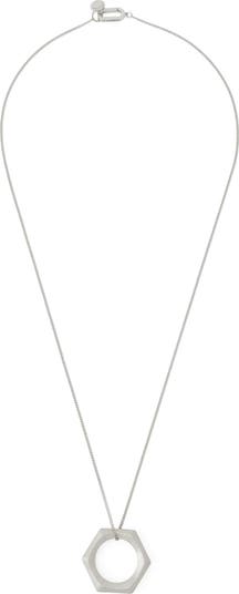 A hexagonal pendant adds a classic utilitarian twist to a long chain-link necklace that's ideal for layering or standalone wear.