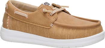 Classic, casual and exceptionally comfortable, this slip-on shoe sports a stretchy upper with faux-leather detail and knotted elastic laces for easy on and off. The cushioned insole and rugged outsole make it a great foundation for their favorite laid-back looks.