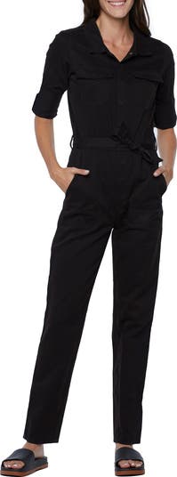 A waist-defining belt and relaxed fit lend instant cool status to this jumpsuit cut from black-wash nonstretch denim.