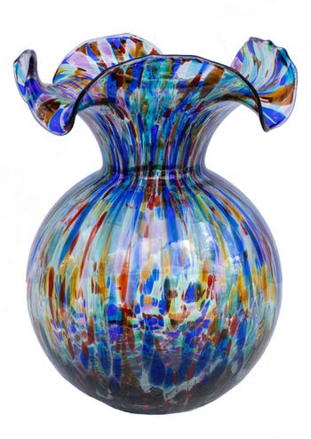 The beautiful curves of hibiscus-flower petals inspire the shape of this fluted glass vase masterfully mouth-blown by Italian artisans.