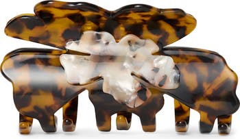 Structure your updo with this bold flower-shaped clip that catches the light with its glossy shine.