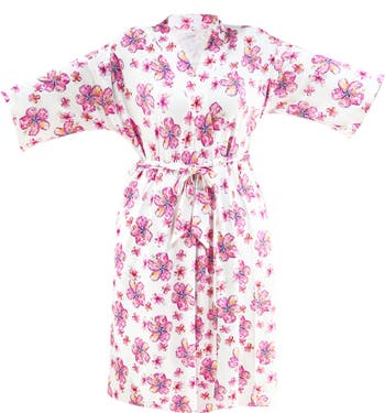 Start and end your day wrapped in the silky softness of this flower-tossed knit robe in a just-right weight for three-season wear.