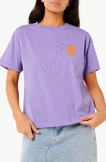 Channel carefree island life in this relaxed-fit T-shirt featuring soft, stonewashed cotton and hibiscus graphics at the front and back.