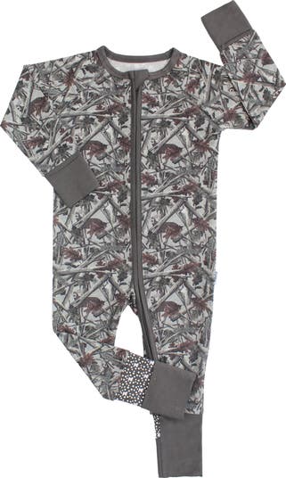 Convertible one piece footed romper in buttery soft viscose. Our HIDDEN print brings the outdoors in, featuring a subtle camo pattern with deer, leaves, and earthy forest tones—perfect for little explorers. Designed for comfort and convenience, this zipper snoozer includes fold-over feet and mittens for all-day or all-night coziness.