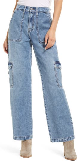 Fashioned with straight legs and cargo-inspired patch pockets, these nonstretch denim jeans will lend fierce and flattering style to any ensemble.