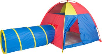 This brightly colored set that pairs a tent with a tunnel is large enough for group play and can be used for both indoors and outdoors.