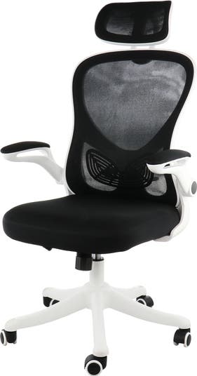 Do your office work in the comfort of this Elama High Back Adjustable Mesh and Fabric Office Chair with Adjustable Head Rest. The sponge cushioned seat and arm rests with breathable mesh back are great for hours of sitting at your desk. With adjustable lumbar support, adjustable headrest, and flip up arm rests, this chair can be customized to your size and liking. The adjustable height and 5 wheel 360 degree swivel base means you can maneuver around your desk and office with ease.