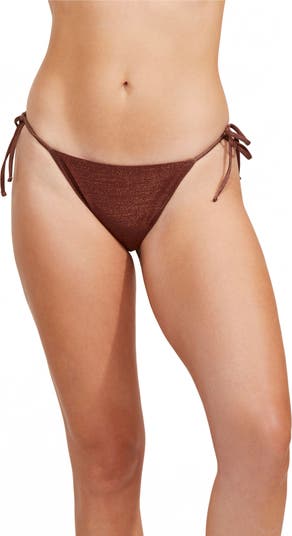 The High End Side Tie Bikini Bottom offers a customizable fit with adjustable sides and a sleek metallic finish. Featuring front and back lining, this bottom pairs perfectly with the High End Bikini Top collection for a chic, coordinated look.