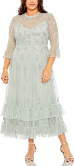 Mac Duggal High Neck Embellished Flutter Half Length Sleeve, Main, color, Sage