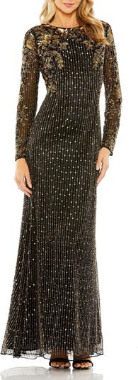 High Neck Long Sleeve Embellished Gown