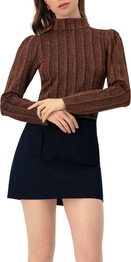 This Top features a high neckline, long sleeves, and a back closure, perfect for a chic and sophisticated look.