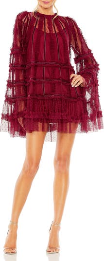High Neck Ruffle Bell Sleeve Trapeze Dress