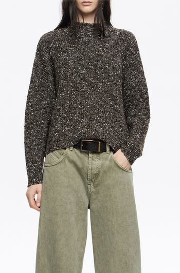 Cropped sweater with all-over contrast neps and long shaped sleeve