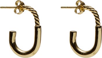 A duality of textures amps up the design of these sterling silver J-hoop earrings plated in warm 18-karat gold.