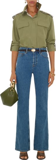 Jeans made in Italy from stretch denim in a mid-blue wash. The five-pocket bootcut style features diagonal belt loops at the back and a suede patch embossed with the Equestrian Knight Design.||Button closure|Suede patch with embossed Equestrian Knight Design at back|Burberry Check tab at side