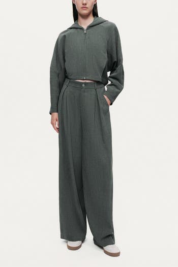 Polished, versatile, and endlessly flattering—these high-rise cigarette trousers are a modern essential for any wardrobe. Cut to a slim straight-leg silhouette with sharp pressed creases and front darts for shape, they elongate the legs and refine your entire look. The clean waistband and concealed hook-and-zip closure create a seamless finish that pairs effortlessly with blouses, blazers, or cozy knits. Ankle-length and unlined for a crisp fit, they’re your go-to for desk-to-dinner elegance.
