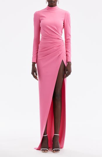 High Slit Long Sleeve Cady Gown