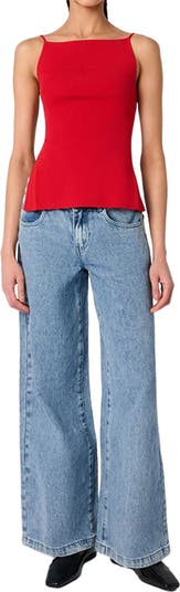 - This ribbed top is designed in a stretch knit fabric with a high neck and open back with adjustable straps.