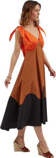 An “Under the Tuscan Sun”daydream of a dress, the High Tide hits every high note of Mediterranean summer style. Supreme quality, 100% Italian materials - check. Sultry deep V at the neck, back, and sides - check. Romantic, voluminous skirt - check, check, check. Crafted in our intricate intarsia technique with soft color block waves along the wide A-line skirt, she’s a statement summer piece in either our floaty poplin or textured begonia jacquard, with adjustable ties at the shoulders so you can share as much or as little of that sunkissed skin as you desire. Super-chic with sandals for an elevated daytime affair, and high-impact with your favorite jewels and heels at aperitivo hour.