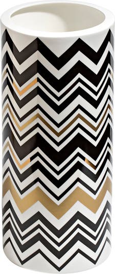 The Missoni Zig Zag collection is a homage to the iconic zigzag stitches that made Missoni's designs instantly recognizable and elevated the brand to global luxury status in the 1960s. Multicolored or self-patterned white, the Zig Zag line is a best-selling line. The range includes dinnerware, flatware, glassware, trays, and scented candles.