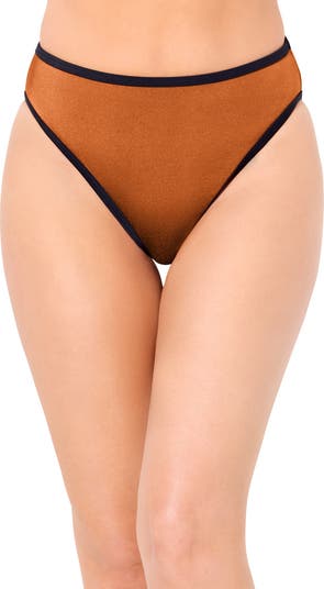 Shimmery high waist brief made to match our Underwire Soft Cup Bikini Top. High-waisted with shirring detail and contrast trim. It provides moderate seat coverage and a flattering fit.