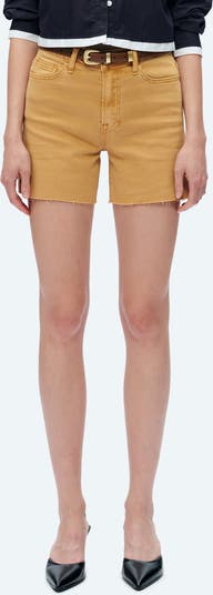 Made from lightweight stretch denim, these casual-cool shorts feature a high waist and raw hems that further the lived-in feel.