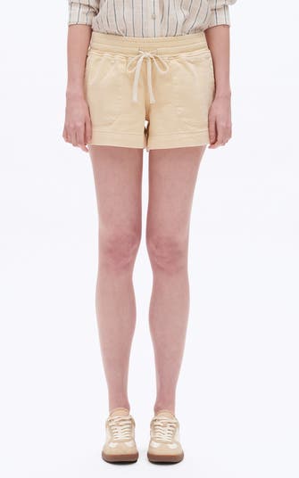 A creamy yellow wash amps up the summery vibe of these denim shorts topped with a high waist to perfectly pair with cropped garments.