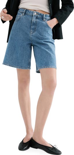 Relaxed and vintage inspired, these nonstretch-denim shorts feature a high waist and a roomy silhouette that ends near the knees.