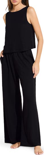 Lounge in the sophisticated look of these pants cut from a drapey organic-linen knit that takes full advantage of the fluid, wide-leg silhouette.