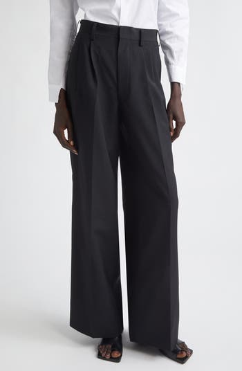 High Waist Pleated Wool & Mohair Wide Leg Pants