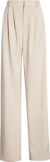 High Waist Pleated Wool Straight Leg Pants