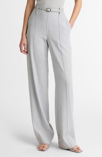 An elastic-eased waist brings discreet comfort to stretchy linen-blend pants that are ready for the workplace with crisp creases and back welt pockets.