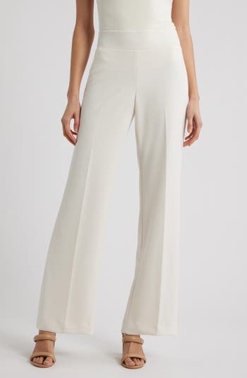 These polished pull-on pants are fashioned with a clean flat front and ankle-grazing wide legs.