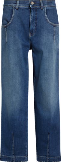 These stretch-denim jeans softened with a touch of lyocell are cut in a relaxed fit with the fullness controlled by topstitched darts at the front pocket and cuffs. They're finished with a medium wash and cut to a versatile ankle length.