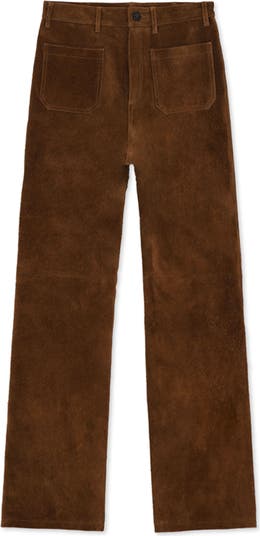 Timeless elegance with Fortela's women's high-waist pants. Crafted in Italy from soft suede leather , these slim-fit trousers offer a sophisticated silhouette. Details include Fortela's signature matte silver buttons, front patch pockets and a refined leather logo patch. A luxurious addition to a conscious wardrobe, designed for lasting style and individuality.