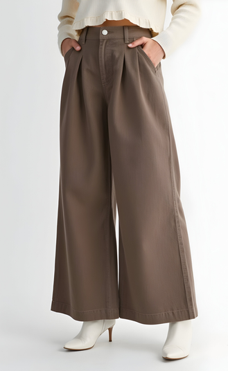 Structured pleats and a wide-leg silhouette bring a polished yet relaxed vibe to these high-waist pants. Designed with functional side pockets and a classic button-zip closure, these trousers offer everyday ease with elevated style. Pair them with cropped knits or blouses for a balanced look.