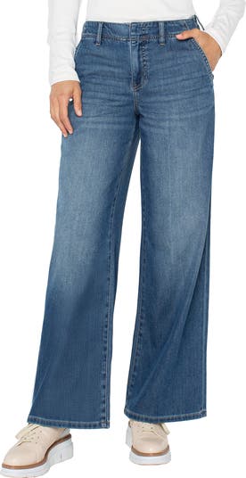 The polished stretch-denim construction lends a distinctive look and texture to these full-length wide-leg jeans that freshen up your off-duty style.