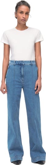 High-waisted, with a straight leg fit, these pants have a slimming effect enhanced by elongating front seams extending from thigh to ankle. A double hook and bar closure with an interior button provide a clean finish in the front, while the back is fit to provide lift and shape. Our denim is made from organic cotton processed in a GOTS-Certified Italian mill. We’ve invested in working with a responsible denim mill that measures their impact and uses data to push the industry forward. They’ve developed innovative dye technologies that reduce their energy and water consumption, allow for plastic-free dyeing, and adhere to best in class chemical standards. The addition of elastane to this material helps to improve strength and performance, helping to extend the garment's lifetime. This style runs small, we recommend sizing up from your normal size.