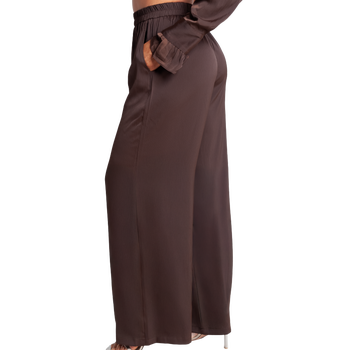 Silk-satin wide-leg pants designed with an elastic waistband, functional side pockets, and fluid drape for polished ease.Pair with matching wrap top as a set.
