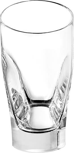 Part of the Conversazione Collection designed by Enzo Mari in 1999, this set of four highball glasses is both dynamic and sophisticated. Each handcrafted crystal glass has a slightly different sculptural base that creates visual dialogue among the pieces, reflecting the collection’s name. Perfect for a modern dining table, they can be paired with other Conversazione items for a cohesive and striking presentation.