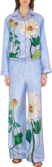A pair of pyjama trousers in silk twill, created in partnership with Highgrove Gardens, which surround the private residence of Their Majesties King Charles III and Queen Camilla. Tailored to a regular fit and trimmed with red piping, the design features hand-drawn artwork by British artist Helen Bullock. The print is inspired by the role bees play in the ecosystem at Highgrove.||Button closure|Drawstring waist|Side slip pockets, back patch pocket|Printed Burberry lettering at back |The Highgrove mark is used under licence from A G Carrick Limited
