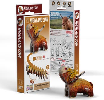 EUGY Puzzles are environmentally friendly cardboard 3D puzzles that take 10-20 minutes to assemble.