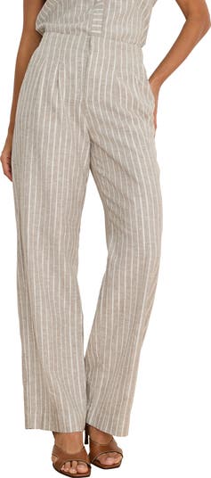 An easy, relaxed silhouette that fits snug along the waist before widening through the legs emphasizes the supreme comfort of these pants cut from a soft linen blend.
