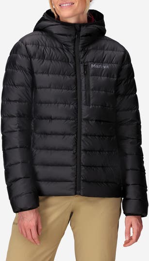 A wind-resistant finish and lightweight down insulation make this zip-up jacket a go-to on and off the trail, while a helmet-accommodating fitted hood puts wintertime sports back in play.