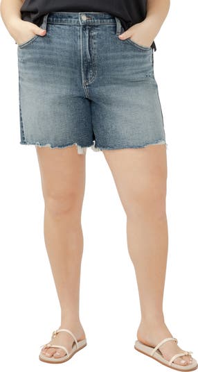 A high waist and a mid-stretch denim fabrication designed for a comfy fit define this pair of longer length shorts that you'll want to wear everywhere.