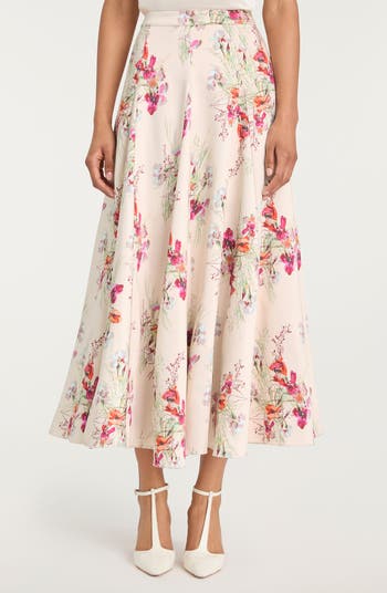 Bring the garden to the party in this swishy skirt tumbled in blooms, given dramatic volume and movement with godets and perfected with a pair of discreet pockets.