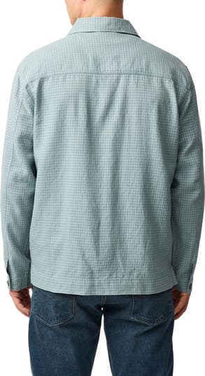 Roomy pockets enhance the utility of a gingham shirt-jacket cut from fine Italian fabric that ensures breathable comfort in a soft linen-cotton blend.